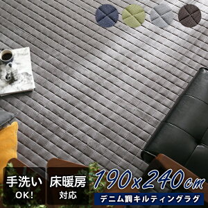【マスク数量限定販売中】 キルティングデニム調ラグLサイズ(190x240cm)オールシーズン、滑り止め付き、手洗い対応【Derid-デリッド-】【OG】